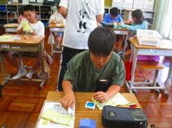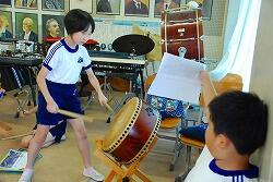 4年生の教科書で目にする琴の楽譜についても,実物を見せていただきました。縦書きで漢字やカタカナが並ぶ独特の楽譜に,子どもたちは興味津々でした。