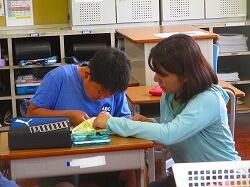交流会では,前半と後半に分かれて,それぞれの教室で活動を体験してもらいました。