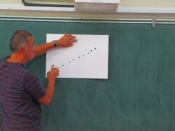 チームを勝利に導くために,決めた走順でチーム全員が走れるか確認していきます。マグネットを動かしながら第1レースからアンカーまで丁寧に見ていきます。