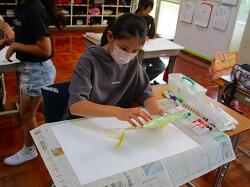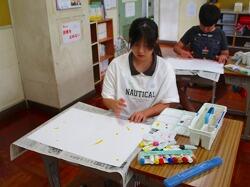 大谷先生に教えていただいたことを思い出いながら自分のひまわりを育てていきます。色使い,水の量,指の動かし方・・・思い思いに絵に取り組んでいますが,先週のことも忘れずに自分の絵に取り入れています。