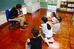 担任でない職員が,子供たちに読んで聞かせたい本を決めます。発達段階や季節など子供たちに合わせて本を選びます。
