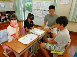 5.6年生で山ゆりリレー(全校リレー)の走順を決めました。全校を縦割り4チームに分けます。名前のマグネットを動かしながら,チームの走順を決めていきます。