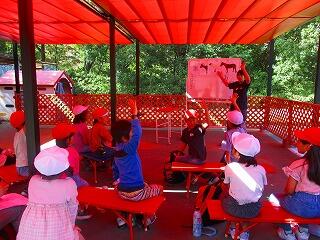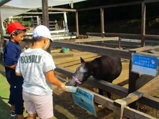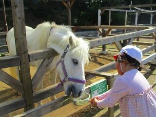 お話のあとは,動物とのふれあいの時間です。みんなわくわくしていました。きちんとお礼を言って、餌をもらいました。