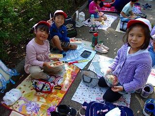 行きのバスの中で,おなかがすいていた子供たち。やっとお弁当の時間になりました。