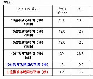 まず10往復にかかる時間を3回計り、その平均を求めます。それから1往復の時間を計算しました。