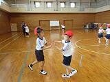 1年生の体育の学習では、いろいろな動きをしてバランス感覚や体幹を養う活動を行っています。