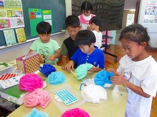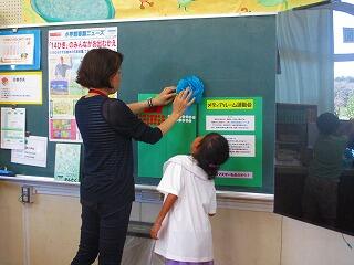 昼休みには,子供たちが得点板を飾るお手伝いをしてくれていました。
