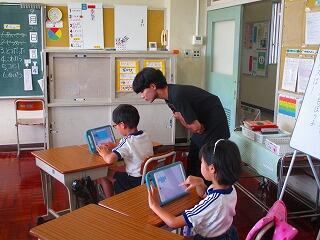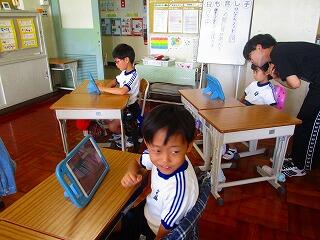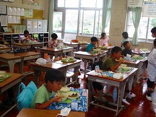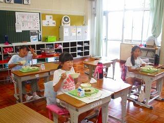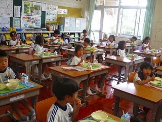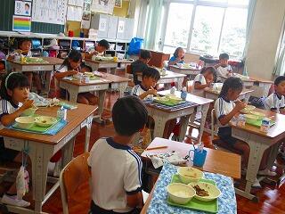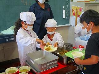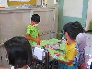 1年生の教室に行ってきました。給食の配膳が上手になりました。