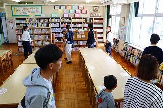 5年生が図書の時間に本を借りたので,得点板にシールが貼られました。
