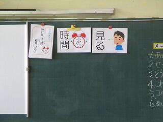 9月も残り3日となりました。2年生の教室では,今月の生活目標「時計をよく見て行動しよう」の振り返りをしていました。