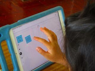 子供たちは,学習端末を使い,できた(ピンク)もう少し(ブルー)の付箋に入力していきました。それぞれの振り返りを共有し,これからについて考えました。