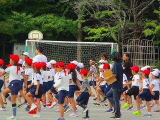 校庭での運動会練習も熱中症の心配が少しだけ和らいでいます。
