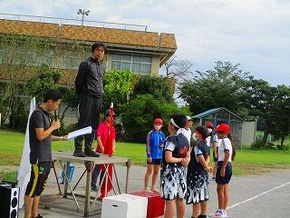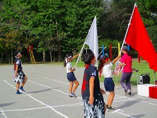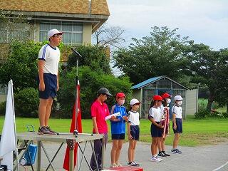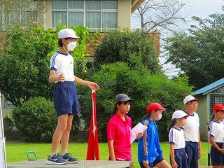 運動会の開会式・閉会式の練習を行いました。入場・退場の仕方,行進,式の流れの確認など全体で動く動き方と代表児童の動きの確認しました。