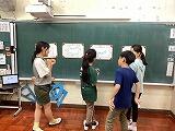 国語では、物語「白いぼうし」の学習をしています。今日は、登場人物の人柄を教科書から読み取りました。「クラゲチャート」という思考ツールを使い、クラゲの頭に考えを書き、足の円の部分にその根拠を書きました。意見交換は、パソコン内だけでなく、自然と会話が始まる姿を目指しています。今日も、少しずつ会話が始まっていました。