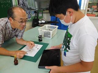 おまけで、理科支援員が、せんべいにもヨウ素液をつけることを試させてくれました。