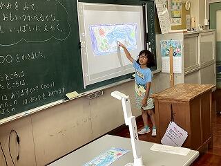 後半は絵の発表会をしました。絵を大きく映して何を描いたのかを発表しました。