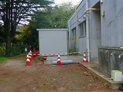 体育館の空調19日には,エアコンが1台だけ取り付けられており,本格的な設置作業が始まるところでした。