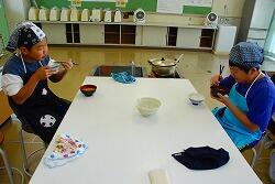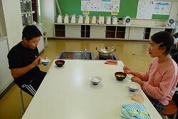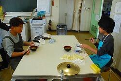 味噌汁も自分たちで作り,廊下にはおいしそうな香りが広がっていました。
