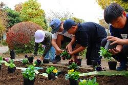 この日はロング昼休みを利用しての作業でしたが,委員会の子どもたちは手際よく,あっという間に植え付けを終えました。