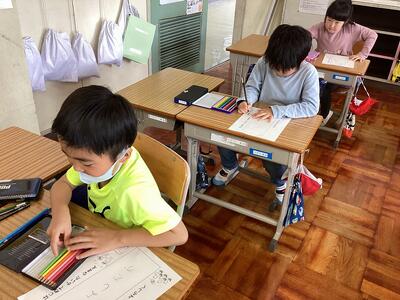 2年生の新出漢字の学習では、みんなで学び合える学習となるように「漢字先生」を行っています。これは、一人ずつ自分がその漢字の先生になってみんなに教えていきます。今日は、漢字を分担して説明する準備をしました。ドリルや漢字の本を見ながら、真剣に書き写しています。自分の担当している漢字を早く教えたくて、うずうずしています。自分の漢字をしっかり発表できるように、進んで練習する子もいます。