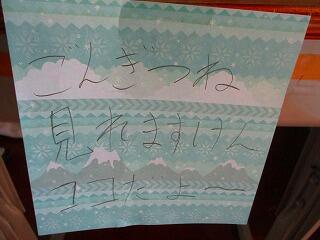 入口には会場の案内がありました。ドアの向こうには,チケット担当がチケットを渡しています。