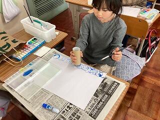 その後,思い浮かんだ言葉をそれぞれのカードに書き写して掲示をしました。時間が足りなかったかつ難易度の高い濁点は校長先生や教頭先生の力を借りました。