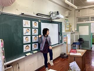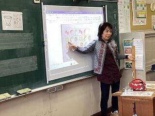 今日の5時間目は外国語活動がありました。久しぶりに教室に来てもらったスー先生。でも子どもたちはすぐに仲良しになりました。そして,初めは英語の音楽「Head, Shoulders, Knees, And Toes」に合わせて楽しく体を動かしました。体の部分の名前もちゃんと覚えている子がたくさんいてびっくりしました。以前にもやったので,後半は反対に歌いながら体を動かしてみました。