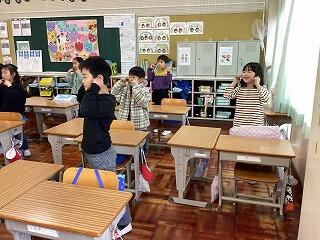 車尾小学校のみんなと手を振ってMeetを切りました。
