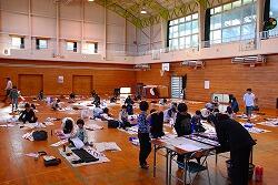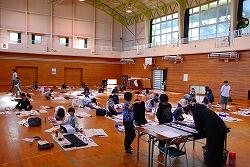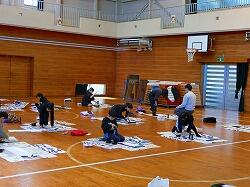 書き初めの練習に向けて,体育館中央部分は使用できるように整備していただきました。ただし,舞台周辺にはまだ工事資材が置かれており,工事中の様子が見られます。