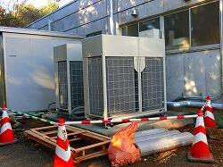 前回のお知らせ時には未設置だった室外機も設置され,外壁には配管工事が進んでいます。