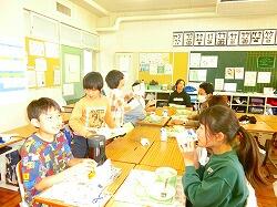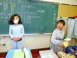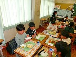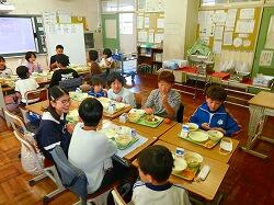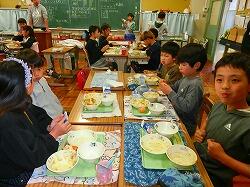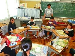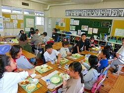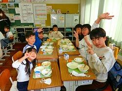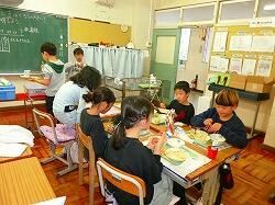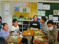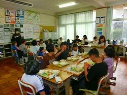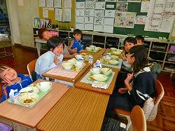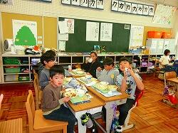 「なかよし給食」では,1年生と5年生,2年生と3年生,4年生と6年生の学年ペアになり,教室で一緒においしい給食を楽しみました。