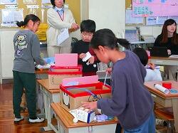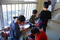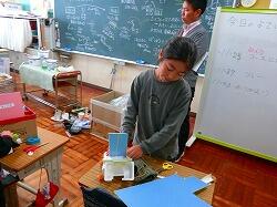 今日は3回目のミーティングを行い,風の力や車体の形,タイヤ,帆(風を受ける部分)などをどう改良するか,真剣に考え車を聴制していました。