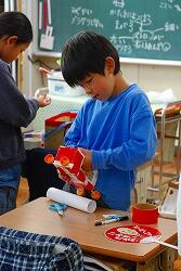 今回の授業は、2年生生活科「おもちゃ作り」の単元で,子どもたちは「0人のリレーで廊下80mを60秒以内にゴールする車を作る」という目標に挑戦しました。