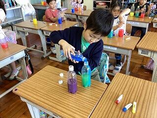 きれいな色水になるように一生懸命に振っています!!