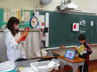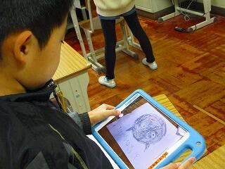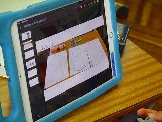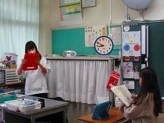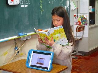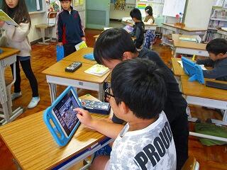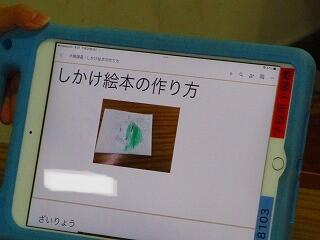 オリジナルのしかけ絵本を作りながら,わかりやすく説明するために学習端末を使っています。「聞いてわかる」「見てわかる」の両方で,より理解が進みます。