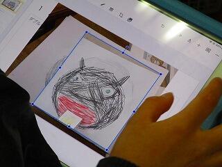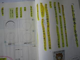 材料や自分の作ったしかけ絵本を写真に撮り,ちょうどよい大きさに加工して説明のスライドに貼りつけていきます。