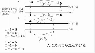 今日の算数は、うさぎ小屋のこみぐあいを比べました。うさぎの数も面積も違う時は、どうやって比べたらよいかを考えました。