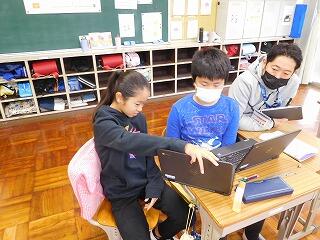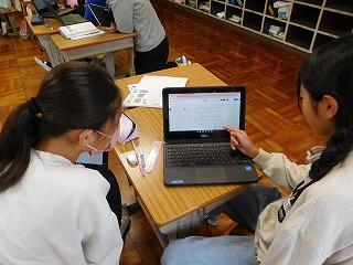 お互いの考えを、書いたジャムボードを見せながら説明し合いました。途中まで書けている人は、この後どうすればよいのかを話し合いました。