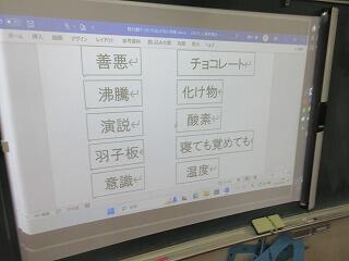 実は、このクイズは2回目で、子どもたちに好評だったので2回目の開催としました。言葉の変遷に興味を持ったので、タブレットPCで子どもたちも言葉探しをしました。