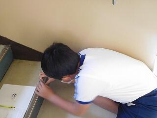好きな場所を測って良いと言うと、東階段、中央階段、西階段に分かれていました。後で、結果報告をし合おうと思っています。