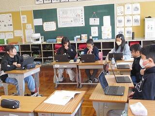 社会では、インターネットや図書室の本を使って、まだみんなが学習していない工業についてのプレゼンをしました。