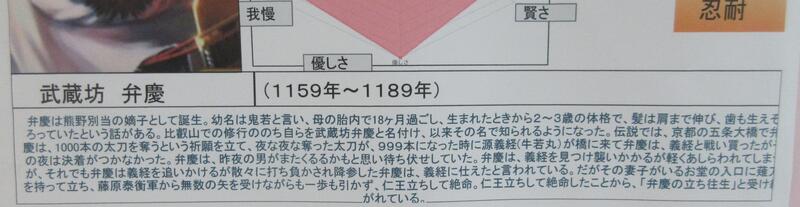 感心したのは、弁慶の紹介文です。担任からの口添えは一切なく、自分で調べて作文をして書き上げました。しっかりした文章構成はもちろん、内容も専門性が高く驚きました。