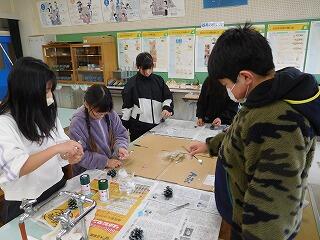 5年生 理科 松ぼっくりでクリスマスツリー作り