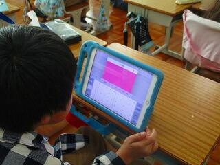 音声入力をしている子もいました。音声で入力した後は,正しく書けているか確認しています。
