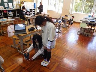 測った後は、それぞれ計算をして1歩分の長さを出し、机の横の長さや、ロッカーの長さなど、いろいろなものを測っていました。