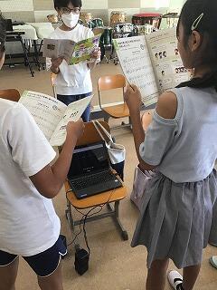 5・6年生は、音楽で「こげよマイケル」という歌を歌いました。