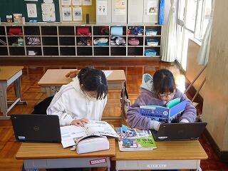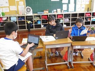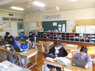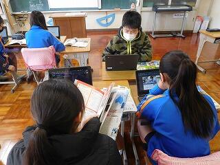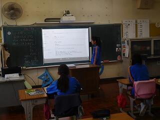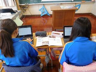 今日の社会の2時間目は、スライド作りに入りました。まだ情報収集が終わっていないグループは、情報を探す人とスライドにまとめる人に分かれて、協力してプレゼンを作り始めていました。