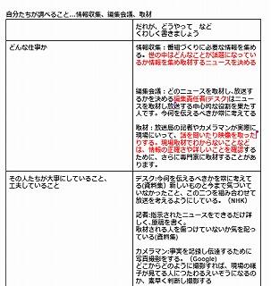 グループは、ニュース作りの順序にしたがって、①情報収集・編集会議・取材、②原稿作成・映像編集、③放送 の3つに分けることになりました。