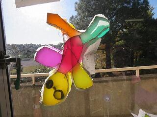 図工で光を通す材料をトレーシングペーパーではさみ、やわらかい光のかざりをつくりました。光を通した材料から作りたいかざりを考えたり、光と影の形や色の組み合わせを工夫したりして作品を完成させました。
