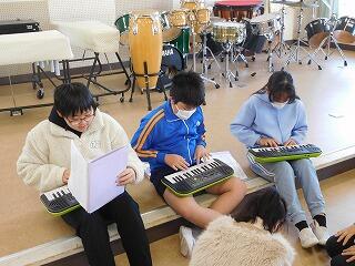 自分たちで話し合ってグループを決めたら、3人で、演奏する順番を決めました。どのような順番で演奏したら自然な感じになるかを考えているグループや、だんだん音が上がっていくようにすることなどを意識しているグループがありました。